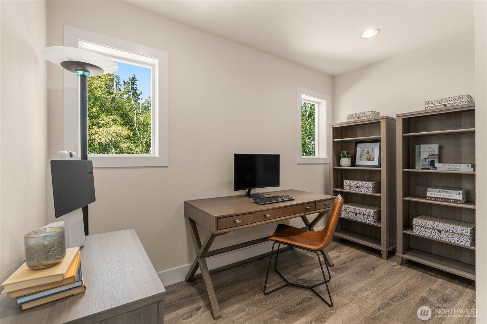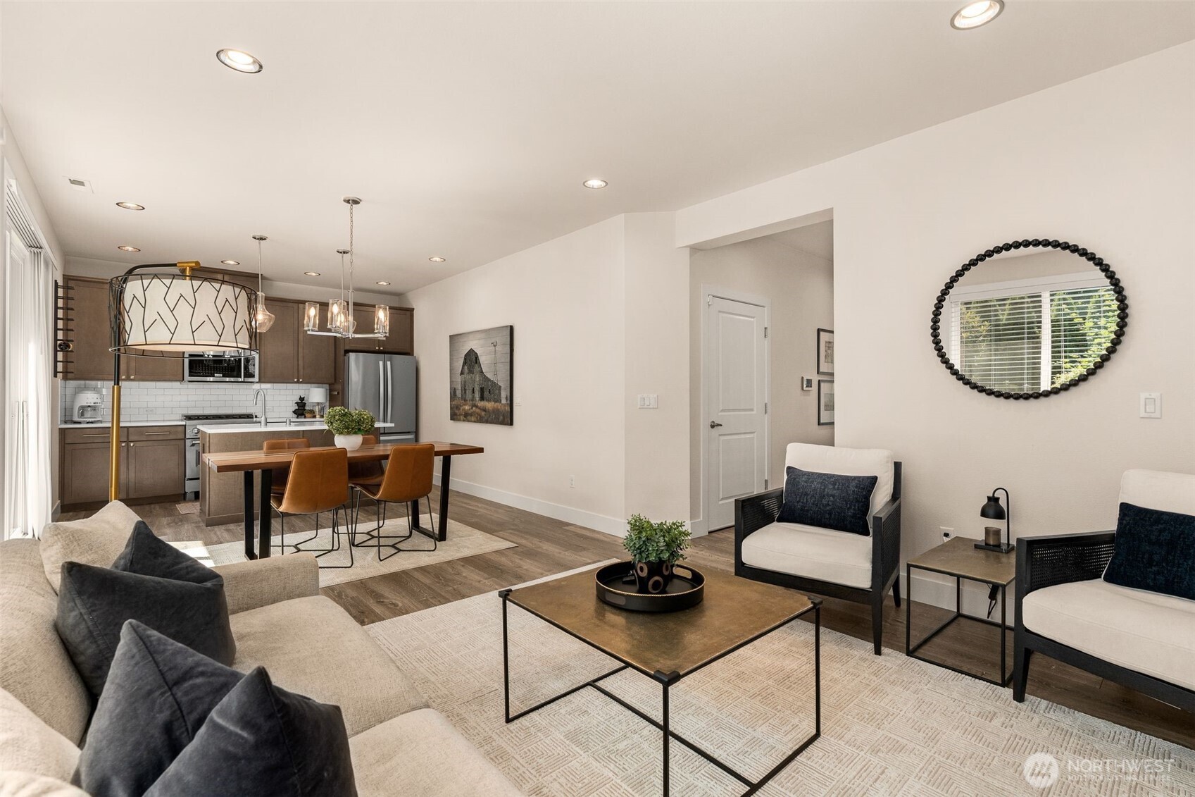 Discover the ease of low-maintenance living in this beautifully maintained 3bed, 2.5ba home. Bright, open spaces and central A/C create a welcoming environment. The kitchen flows effortlessly into the dining and living areas, making daily life and entertaining simple and stress-free. Upstairs, a private office/work space offers the perfect spot for productivity, while the versatile top-floor loft is ready for movie nights, a cozy retreat, etc. A wonderful landscaped yard, an inviting outdoor escape designed for enjoyment. With a two-car garage, generous storage and security system, this property offers the perfect blend of comfort, convenience, and carefree living.